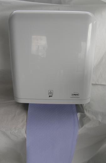 Sähköinen paristoja ja verkkovirtaa käyttävä automaattinen käsipyyhe annostelija.